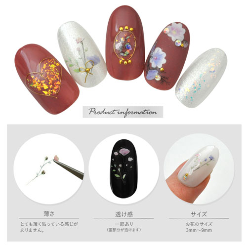 透け感:一部あり(茎部分が透けます) お花のサイズ:3mm〜9mm 注意事項 ・ロットにより色に差があります。