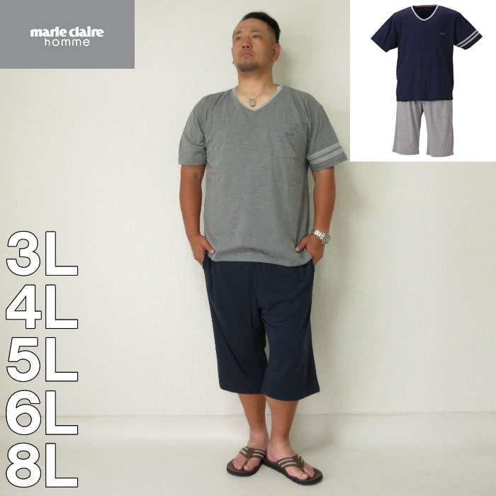 marie claire homme 天竺Vネック半袖Tシャツ+ハーフパンツ 大きいサイズ メンズ ビッグサイズ メンズファッション 3L4L5L6L8L 服 専門店 大きなサイズ ビックサイズ 超特大【送料無料:本州・四国・九州】 パジャマ ホームウェア 部屋着 上下セット