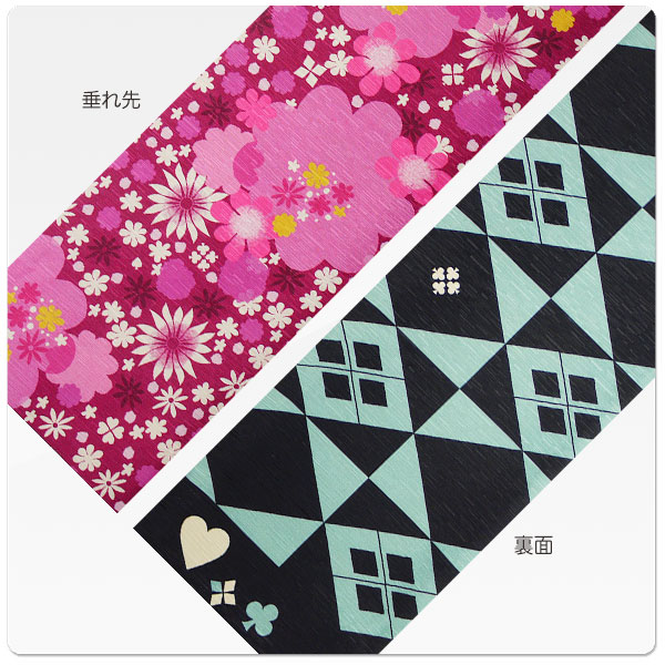 京wakka半巾帯コレクション 商品テーマ 【夢の中へ】 満開のお花畑の中に隠れている こぼれたトランプのマークを 探して遊ぶネコ達 まるで夢の中をのぞいているようです。